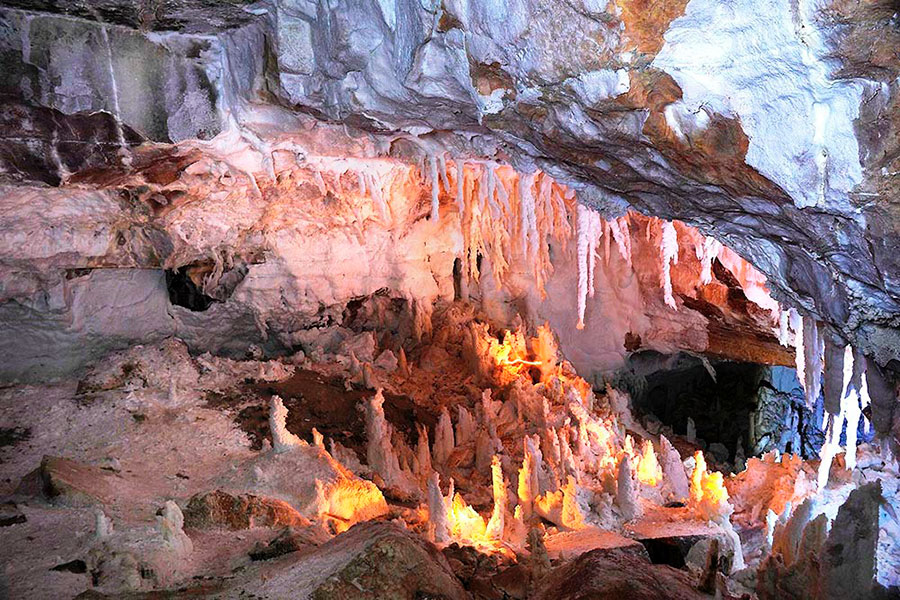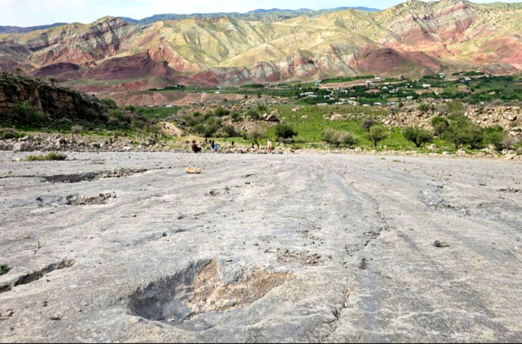 The Dinosaur plateau, Also known as the Khojapil- Ata tracksite, is situated near the village of Hojapil (meaning ”sacred elephants”). Lying at around 1,500-1,800 meters above sea level, this limestone slope dates back to the late Jurassic period (about 140-155 million years ago). It contains between 2,000 to 3,000 dinosaur footprints across 31 distinct trackways. The most remarkable is a 311-memer- long continuous trail, believed to be the longest of its kind in the world. Footprint sizes vary from 20 to 70 cm and they are attributed to dinosaurs like Megalosaurus and Iguanodon. A cultural legend explains that locals once thought these prints belonged to elephants from Alexander the Great’s army, Hence the village’s name.